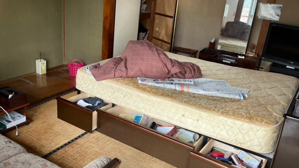 「このお部屋まるまるすっきりしてほしい」ということで、お受けいたしました。ベッドをはじめ、すべて回収した後は、心を込めて簡易清掃でお仕上げいたします!